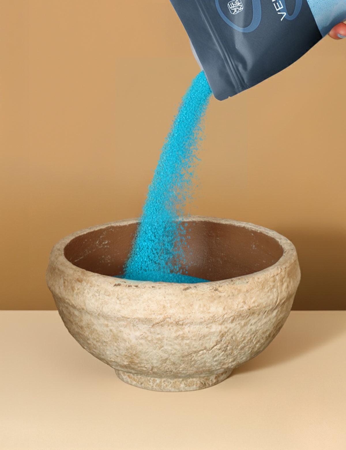 Wähle ein hitzebeständiges Gefäß und fülle Veluma Kerzensand bis zur gewünschten Höhe ein. Größe, Form und Farbe entscheidest du – so, wie es zu dir und deinem Moment passt.