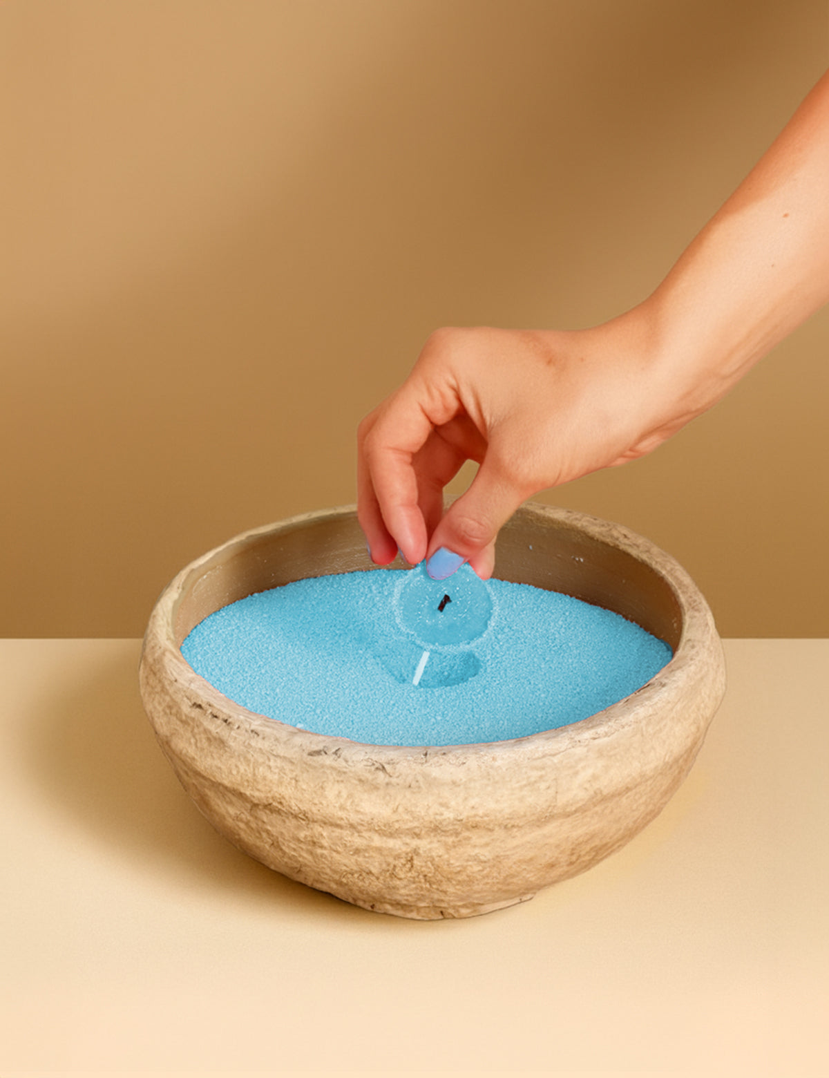 Unser Kerzensand erfüllt dein Zuhause mit wohltuendem Duft und dem Gefühl, angekommen zu sein – ganz ohne Ruß und immer wieder zum Nachfüllen.