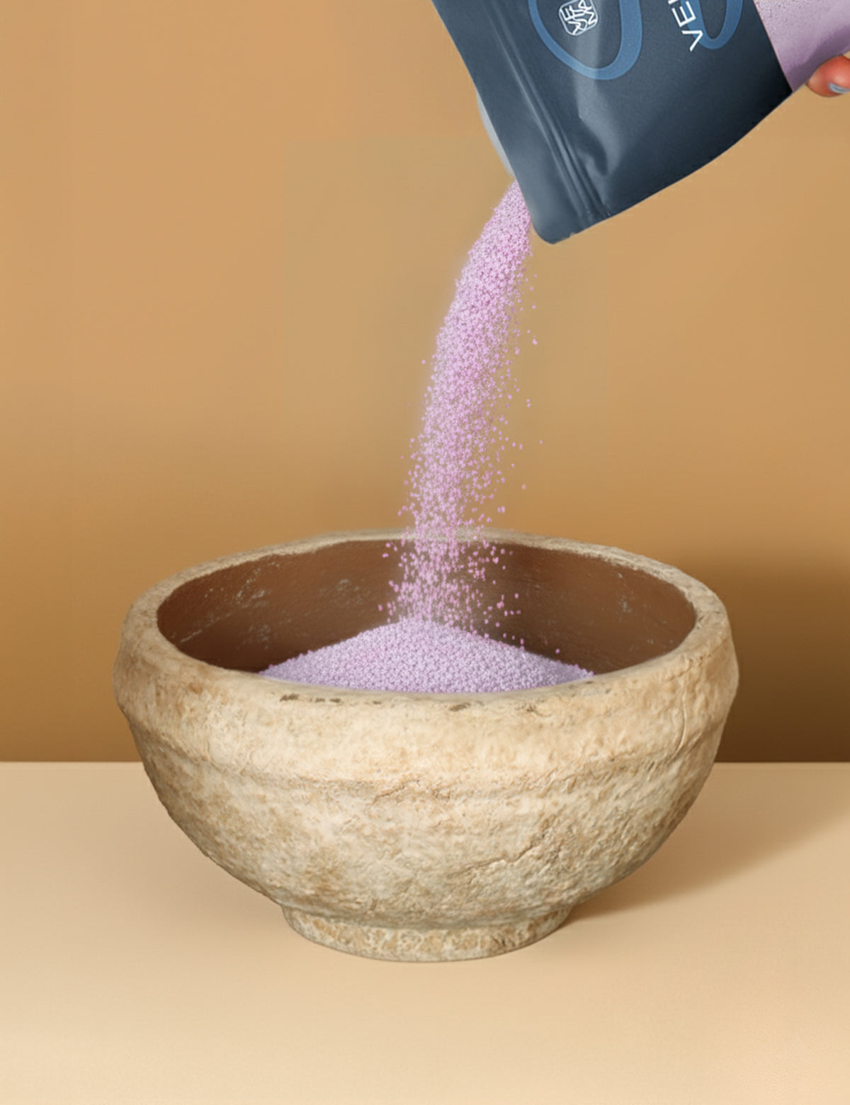 Wähle ein hitzebeständiges Gefäß und fülle Veluma Kerzensand bis zur gewünschten Höhe ein. Größe, Form und Farbe entscheidest du – so, wie es zu dir und deinem Moment passt.
