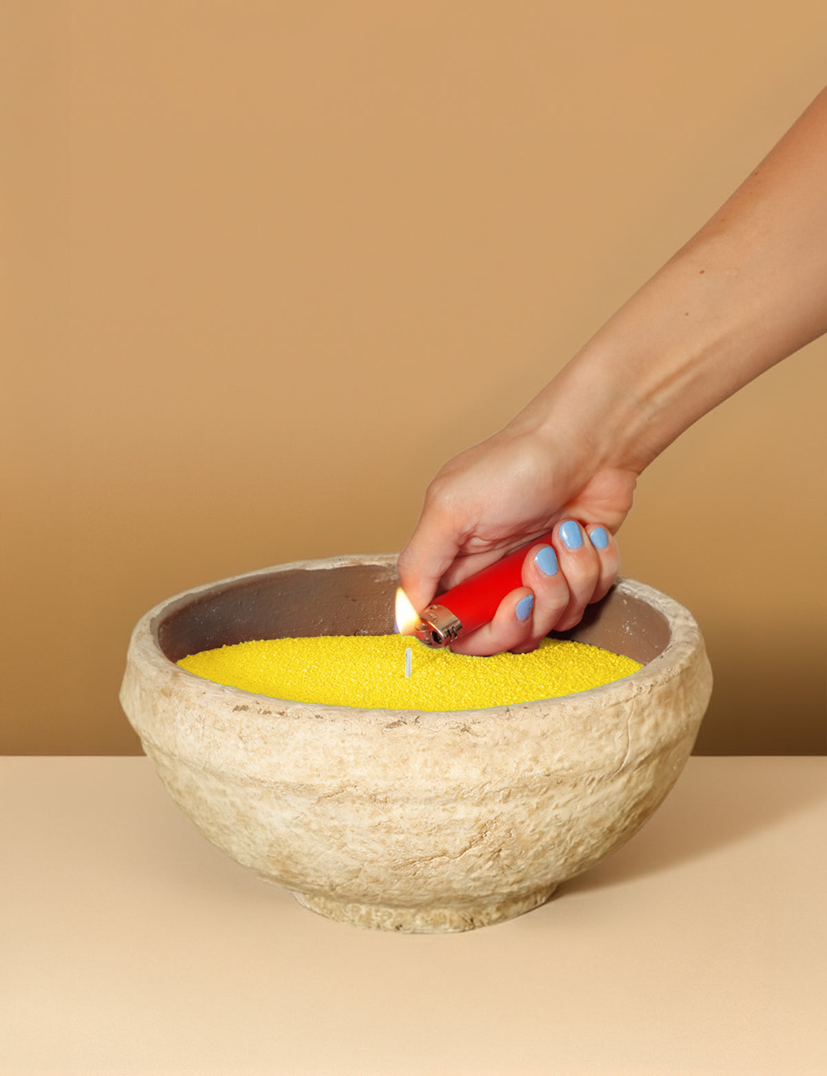 Unser Kerzensand erfüllt dein Zuhause mit wohltuendem Duft und dem Gefühl, angekommen zu sein – ganz ohne Ruß und immer wieder zum Nachfüllen.