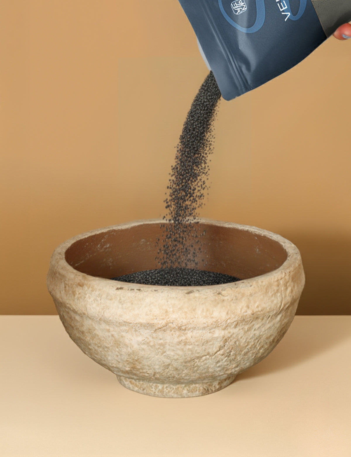 Wähle ein hitzebeständiges Gefäß und fülle Veluma Kerzensand bis zur gewünschten Höhe ein. Größe, Form und Farbe entscheidest du – so, wie es zu dir und deinem Moment passt.