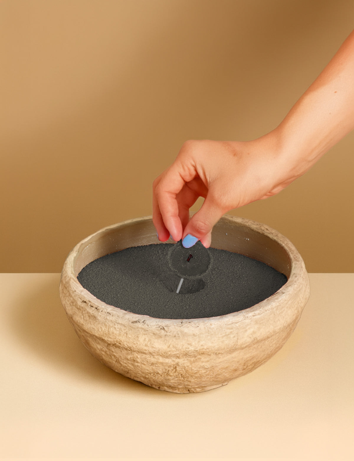 Unser Kerzensand erfüllt dein Zuhause mit wohltuendem Duft und dem Gefühl, angekommen zu sein – ganz ohne Ruß und immer wieder zum Nachfüllen.