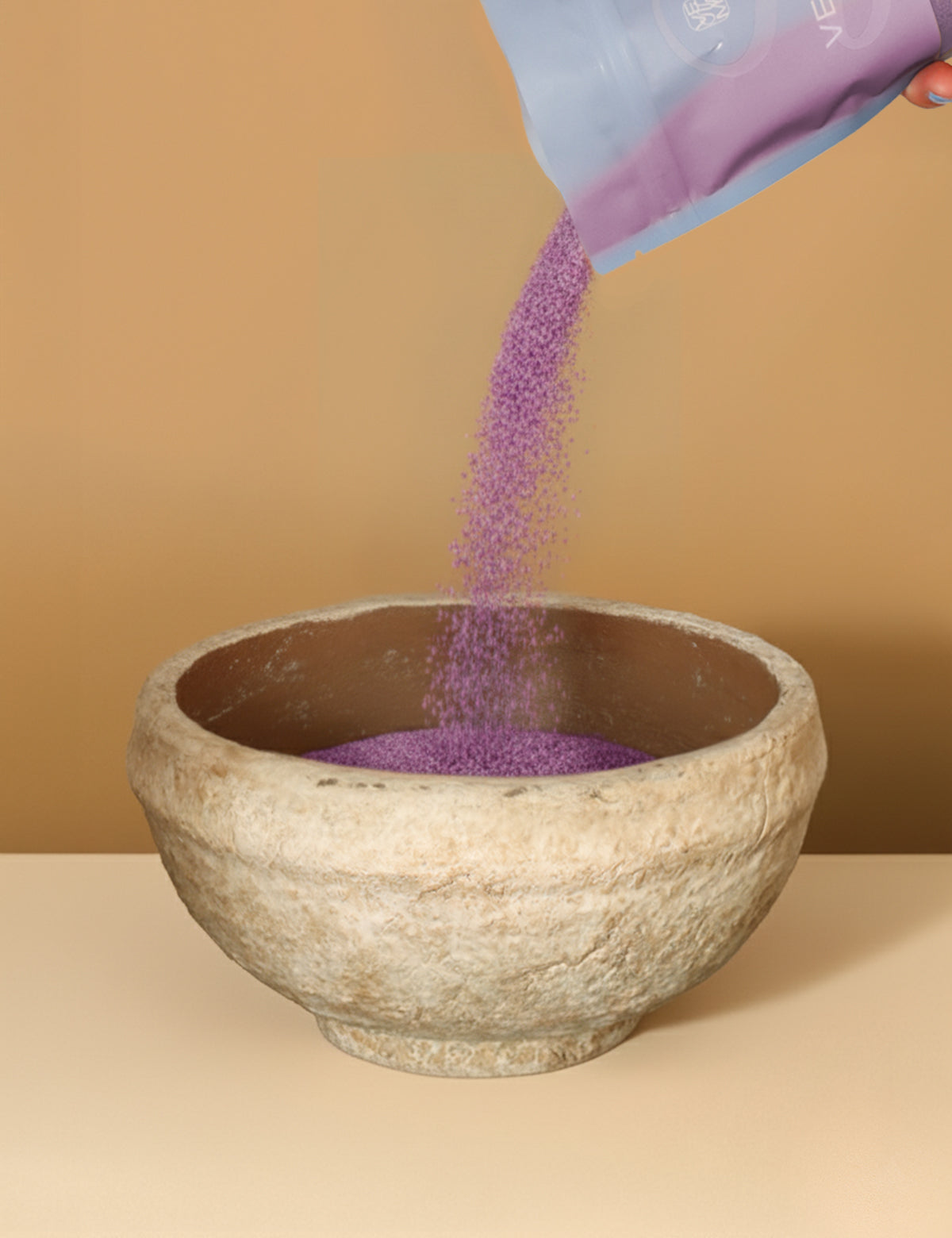 Wähle ein hitzebeständiges Gefäß und fülle Veluma Kerzensand bis zur gewünschten Höhe ein. Größe, Form und Farbe entscheidest du – so, wie es zu dir und deinem Moment passt.