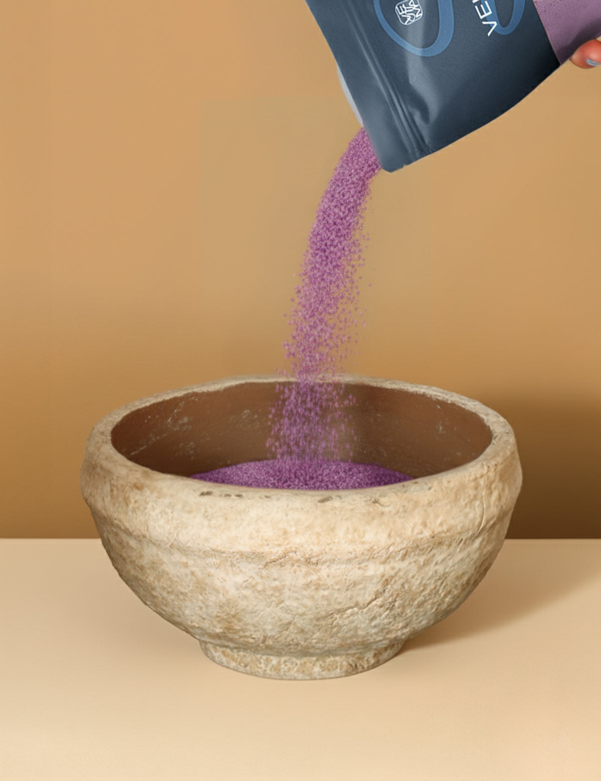 Wähle ein hitzebeständiges Gefäß und fülle Veluma Kerzensand bis zur gewünschten Höhe ein. Größe, Form und Farbe entscheidest du – so, wie es zu dir und deinem Moment passt.