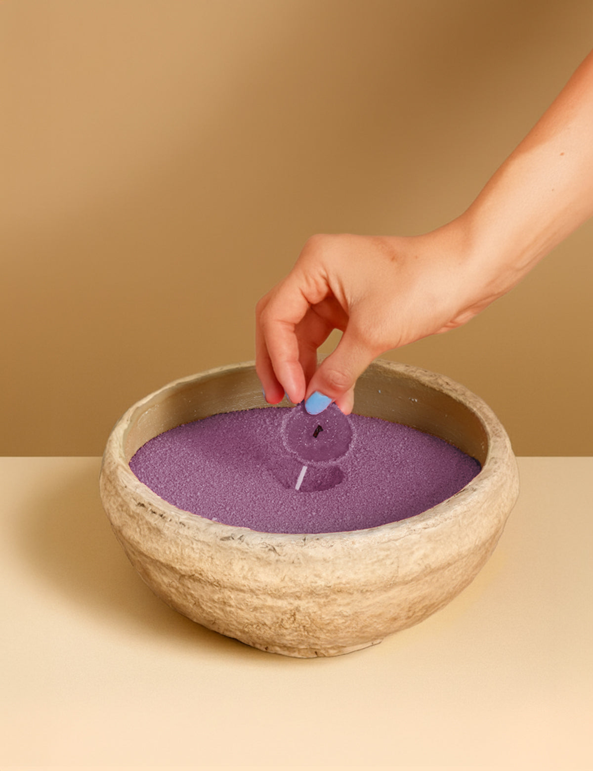 Unser Kerzensand erfüllt dein Zuhause mit wohltuendem Duft und dem Gefühl, angekommen zu sein – ganz ohne Ruß und immer wieder zum Nachfüllen.