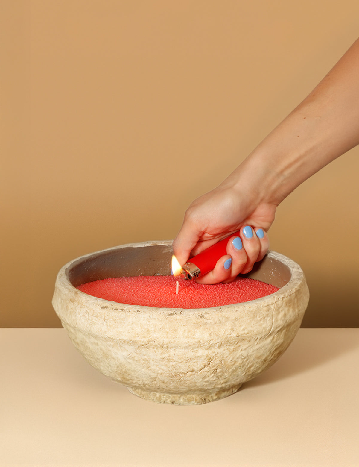 Unser Kerzensand erfüllt dein Zuhause mit wohltuendem Duft und dem Gefühl, angekommen zu sein – ganz ohne Ruß und immer wieder zum Nachfüllen.