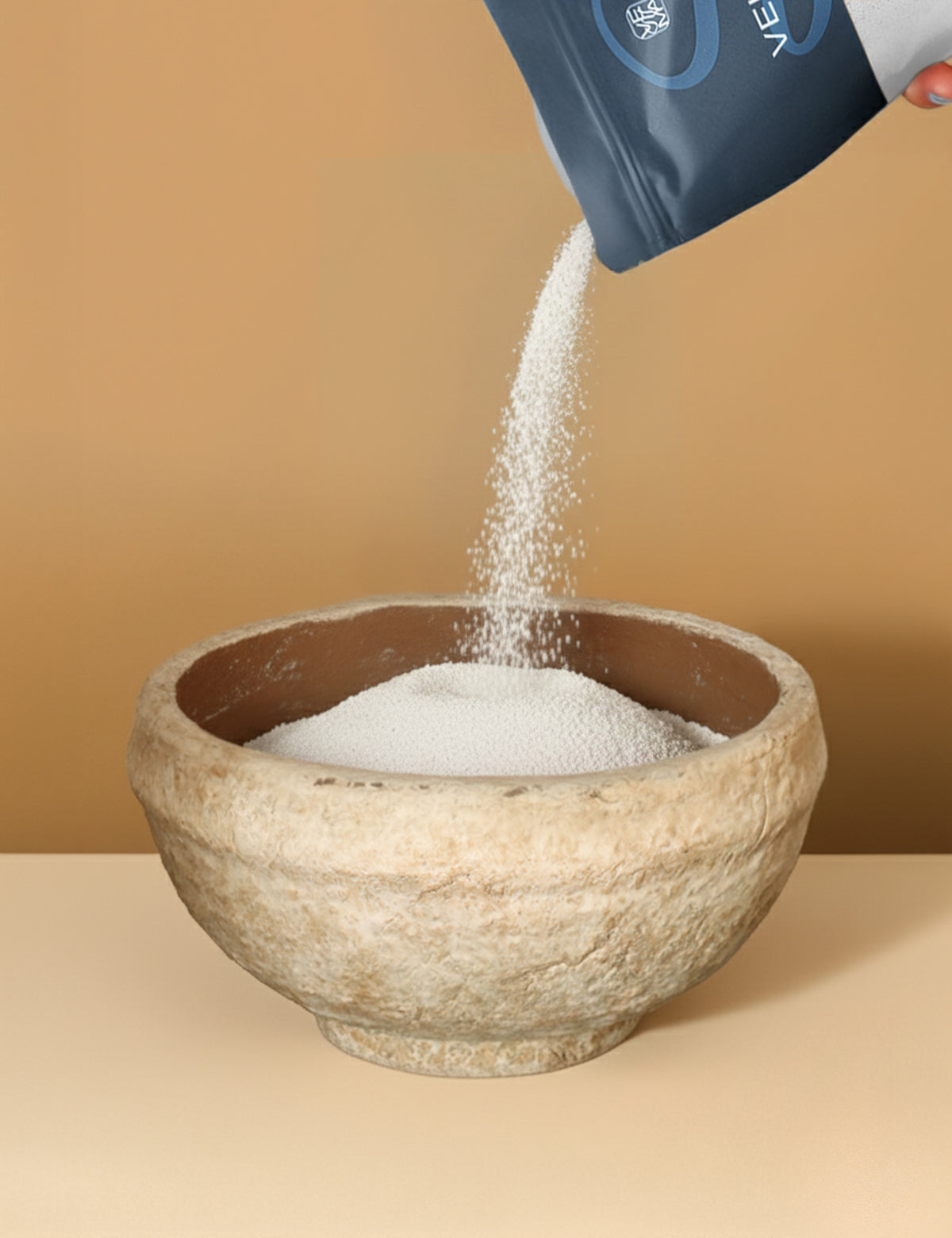 Wähle ein hitzebeständiges Gefäß und fülle Veluma Kerzensand bis zur gewünschten Höhe ein. Größe, Form und Farbe entscheidest du – so, wie es zu dir und deinem Moment passt.
