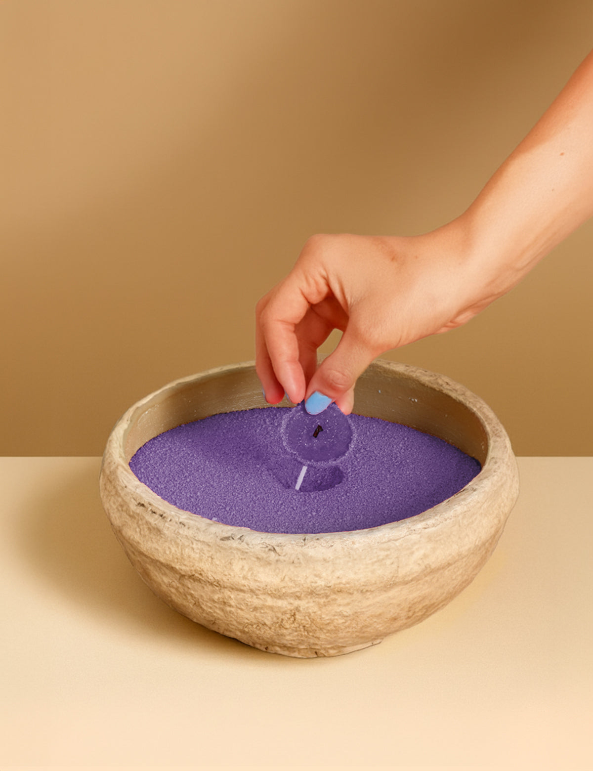 Unser Kerzensand erfüllt dein Zuhause mit wohltuendem Duft und dem Gefühl, angekommen zu sein – ganz ohne Ruß und immer wieder zum Nachfüllen.