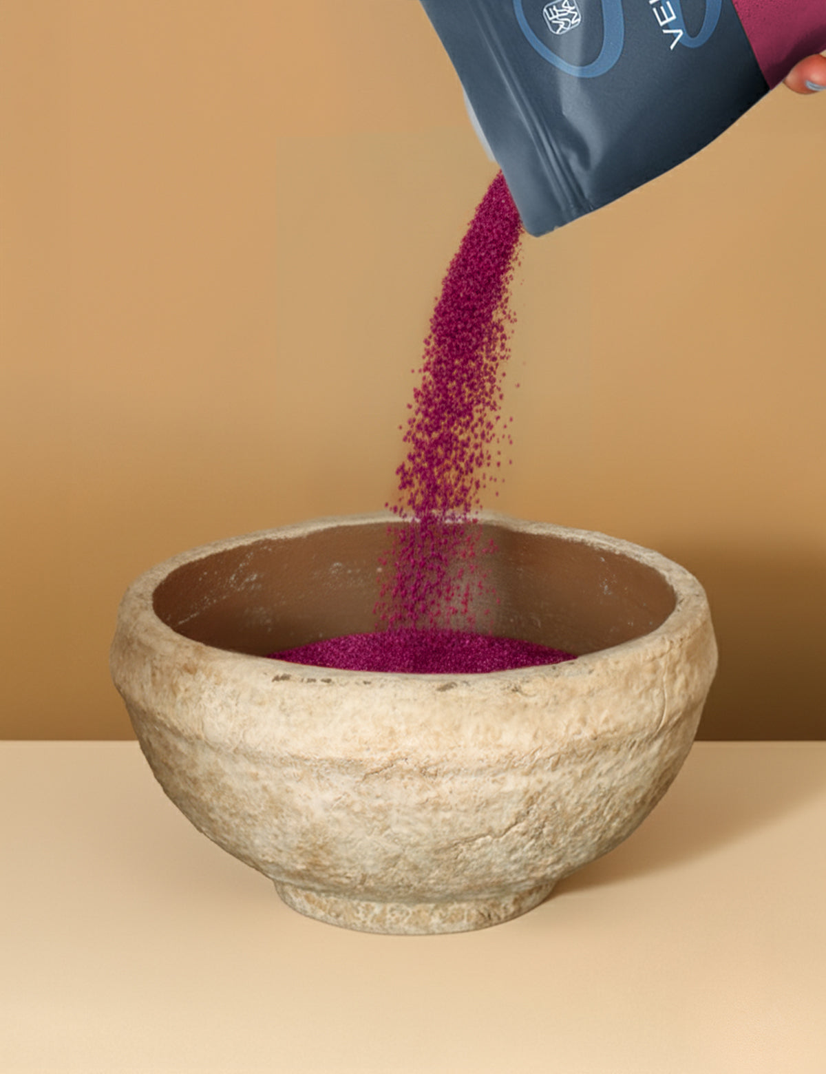 Wähle ein hitzebeständiges Gefäß und fülle Veluma Kerzensand bis zur gewünschten Höhe ein. Größe, Form und Farbe entscheidest du – so, wie es zu dir und deinem Moment passt.
